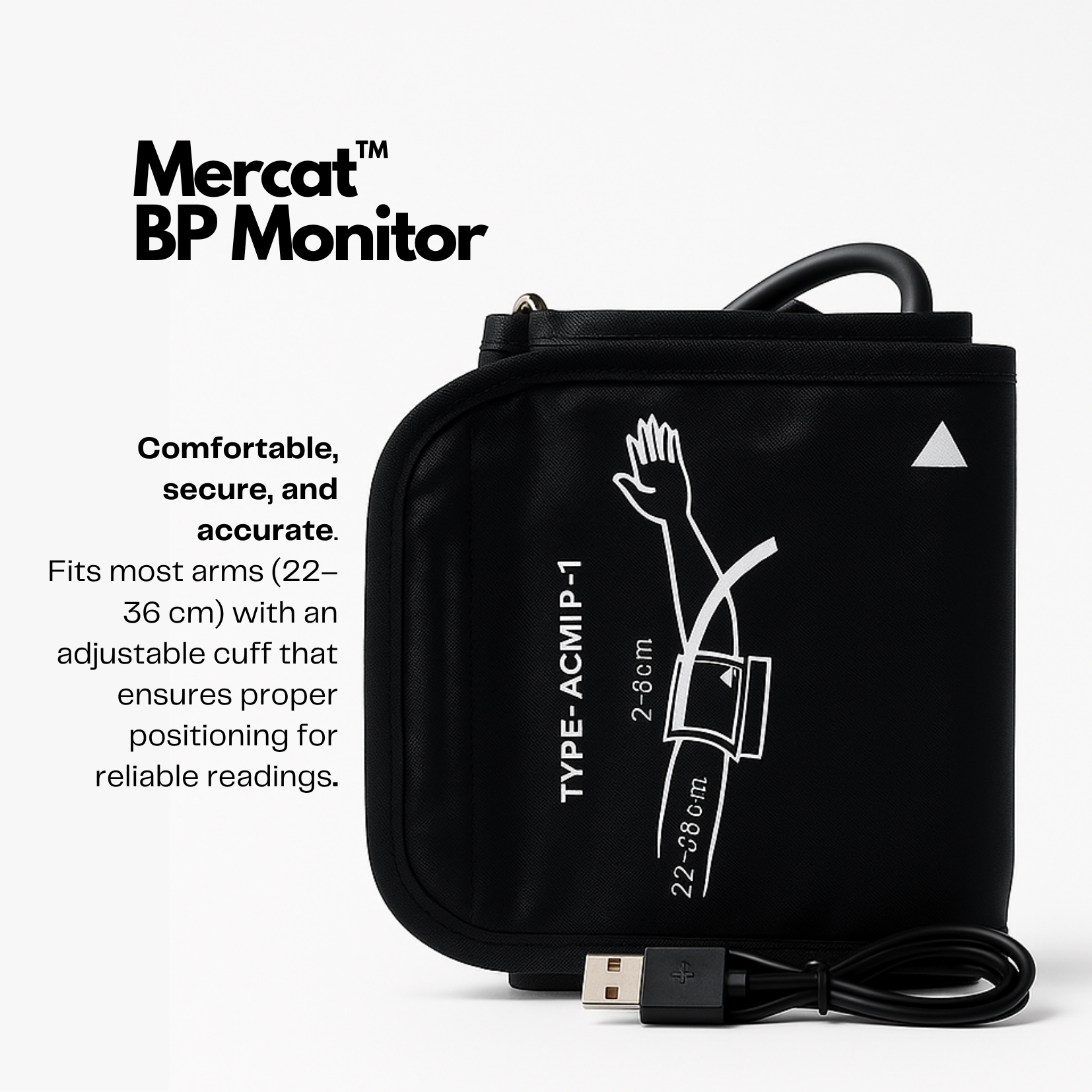 The Mercat BP Monitor is designed for effortless health tracking. With just one touch, you get fast and accurate readings of your systolic, diastolic, and pulse rate on a large, clear display. The adjustable cuff fits most arms (22–36 cm), making it perfect for daily use by all age groups — especially elderly, diabetic, and hypertensive individuals.